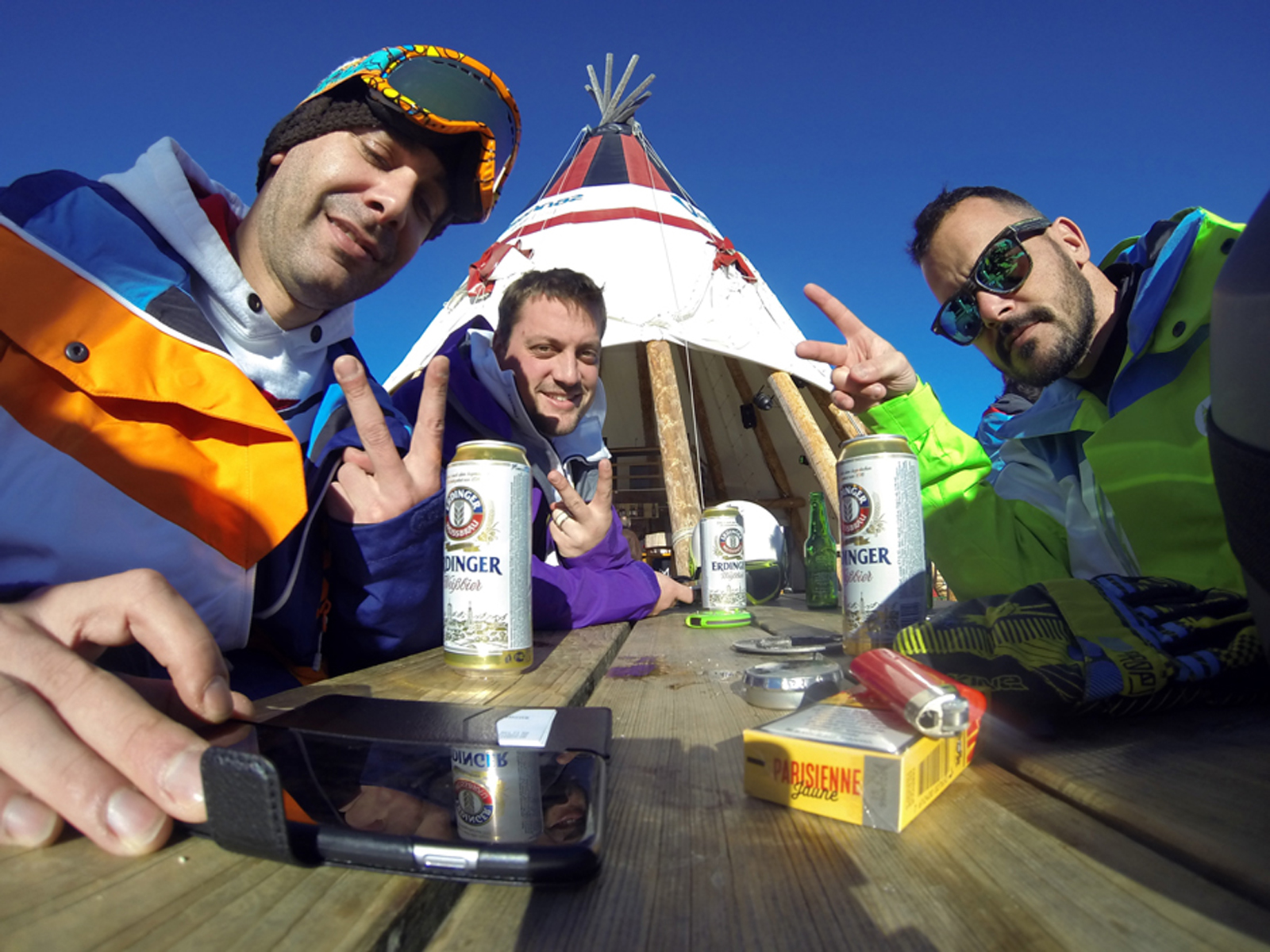 Malgré le manque cruel de neige, nous décidons de faire une petite journée. Slalomer entre les cailloux, boire quelques bières, et bien rigoler, voici le programme…