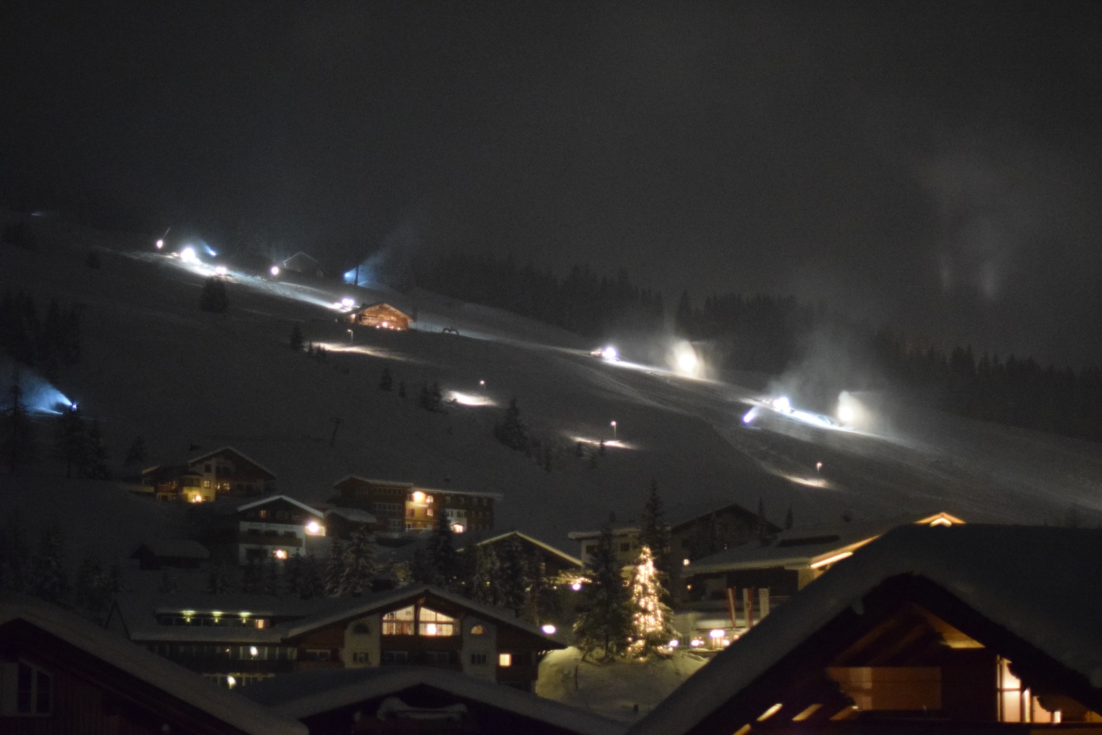 420km de route et à l’arrivée, la découverte d’une station incroyable. Chaînes obligatoires, heureusement qu’on a une Quattro… Nous prenons possession de notre chambre, faisons un peu le tour du village et allons aux informations sur le domaine.